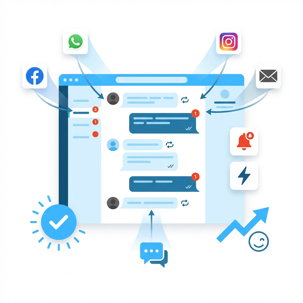 Manage WhatsApp, Facebook, Instagram, email, and website chat in one place.