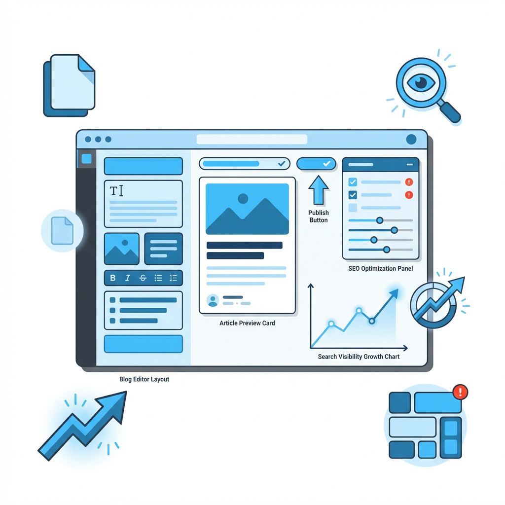 Publish articles to improve SEO and authority.